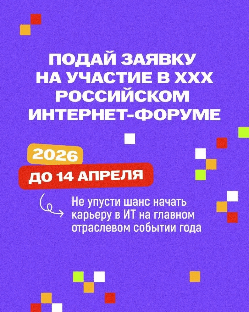 С 27 по 29 апреля 2026 года в технопарке «Сколково» (г. Москва) состоится Российский Интернет‑Форум (РИФ‑2026) — одно из ключевых мероприятий в сфере цифровых технологий, объединяющее представителей органов государственной власти, профильного бизнеса, экспертного сообщества, разработчиков, блогеров и средств массовой информации.