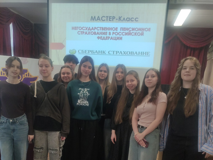 02 апреля 2026 года для студентов группы П-2-23-02 отделения «Право и организация социального обеспечения» ФСПО под руководством заведующего отделения Ульянкиной З.Н. состоялся мастер-класс по ознакомлению со страховыми продуктами страховой компании «Сбербанк Страхование». Тема «Негосударственное пенсионное страхование в Российской Федерации».