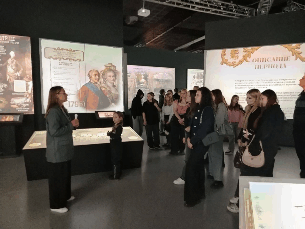 Первая часть прошла в историческом парке на выставке «Романовы (1613–1917)». Ребята проанализировали, как мультимедийный формат «Россия — моя история» транслирует императорский период: от смуты до революции. Обсудили приемы вовлечения посетителя в большой нарратив.