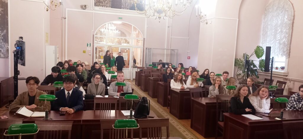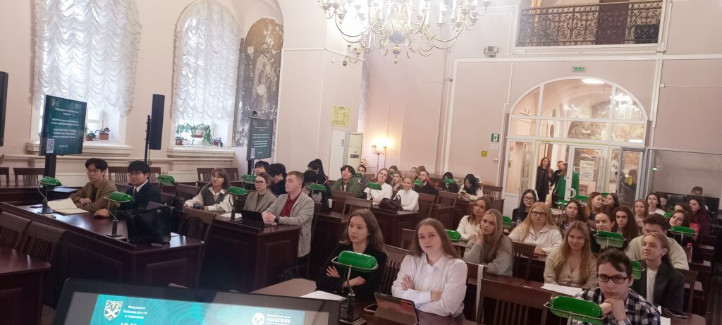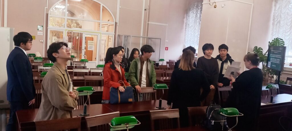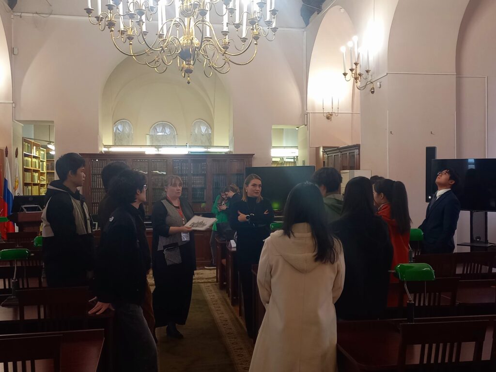 Для иностранных студентов из Китая, находящихся на ФБТ по обмену, была проведена экскурсия по зданию библиотеки, организованная ведущим специалистом отдела редких книг Еленой Анатольевной Шалаевой. Экскурсия позволила участникам более подробно познакомиться с богатым фондом редких и ценных изданий, а также узнать об истории здания, в котором находится научная библиотека.