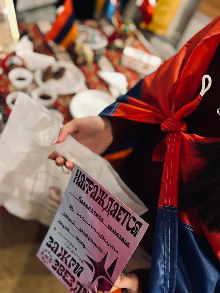 Студенты из «Кавказский международный культурный центр» подготовили экспозицию своих национальных сувениров, символики и вкусных угощений, которые с огромным удовольствием дегустировали участники мероприятия.