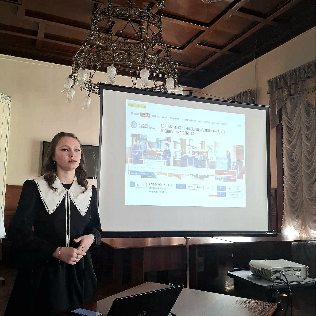 Аксенова Нелли, студентка группы П-2-25-07 выступила с презентацией – «Актуальные вопросы развития социального предпринимательство в РФ».