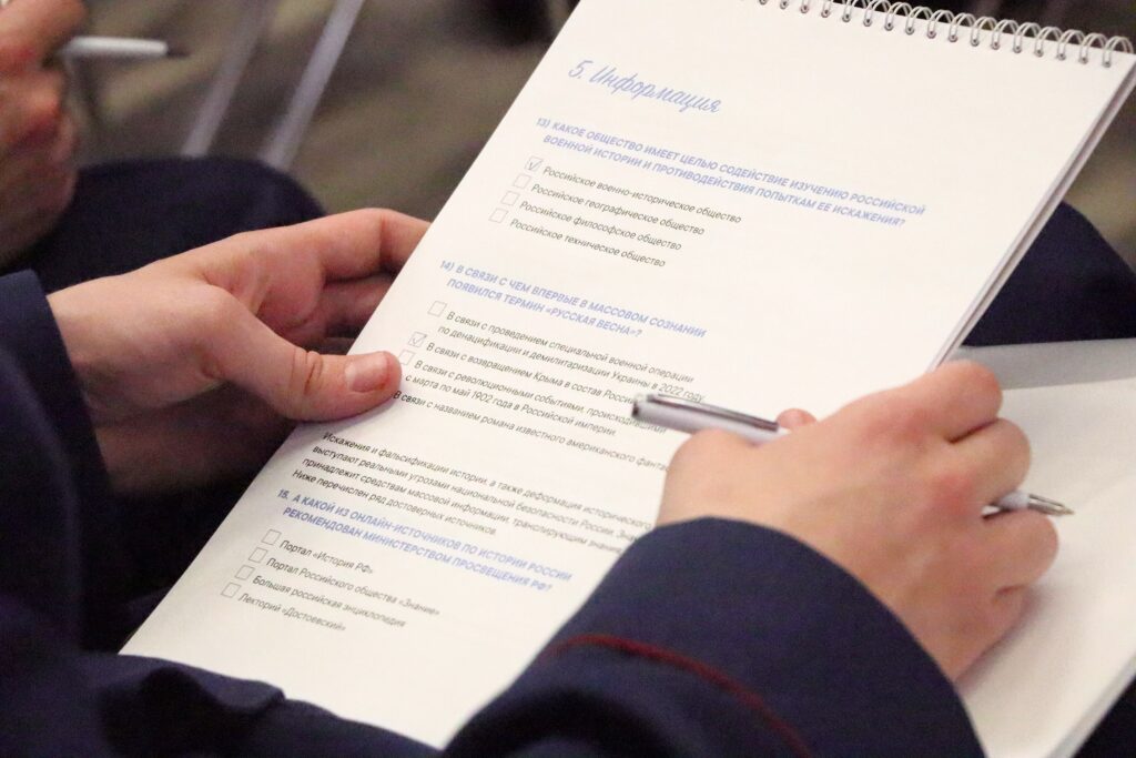 Участникам предлагали ответить на вопросы о важных событиях прошлого и настоящего России, о её борьбе за свободу и независимость.
