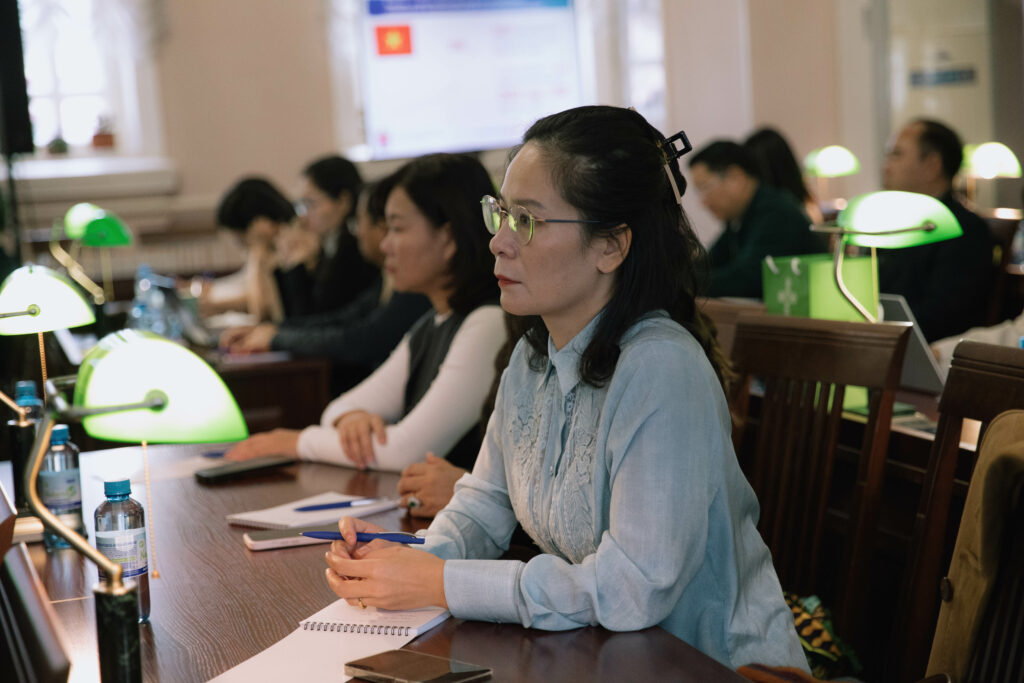 Рабочая встреча прошла в читальном зале Научной библиотеки института. С приветственным словом к гостям обратилась заместитель директора Ольга Нестерова, отметив исторический характер и значимость укрепления научно-образовательных связей между Российской Федерацией и Социалистической Республикой Вьетнам.