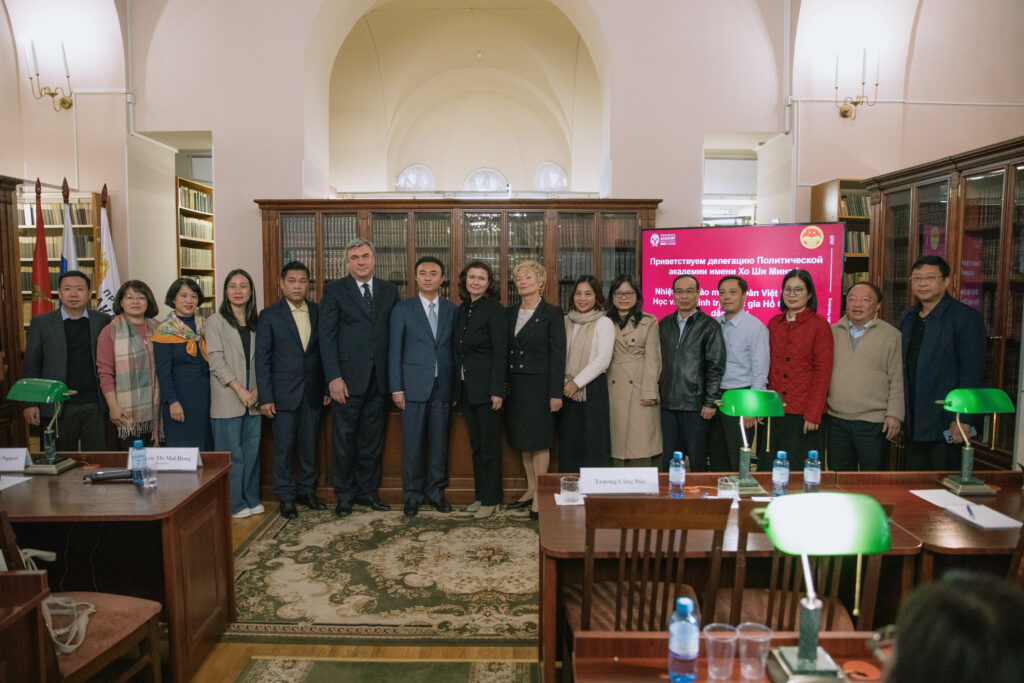 23 октября Президентская академия в Санкт-Петербурге приняла делегацию Политической академии имени Хо Ши Мина Социалистической Республики Вьетнам во главе с заместителем секретаря партийной организации господином Чыонг Конг Даком. Визит состоялся в рамках реализации комплекса мероприятий по профессиональному развитию и обмену управленческим опытом между Президентской академией и представителями Политической академии им. Хо Ши Мина.