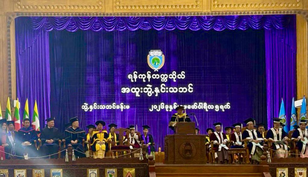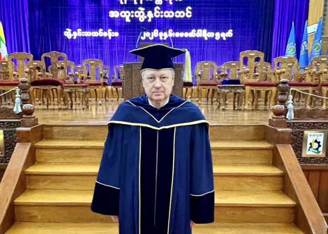 В Янгонском университете состоялась торжественная церемония присвоения степени почетного доктора в области государственного управления исполняющему обязанности президента Республики Союз Мьянма Мин Аун Хлайну. В мероприятии принял участие директор Президентской академии в Санкт-Петербурге Андрей Хлутков.