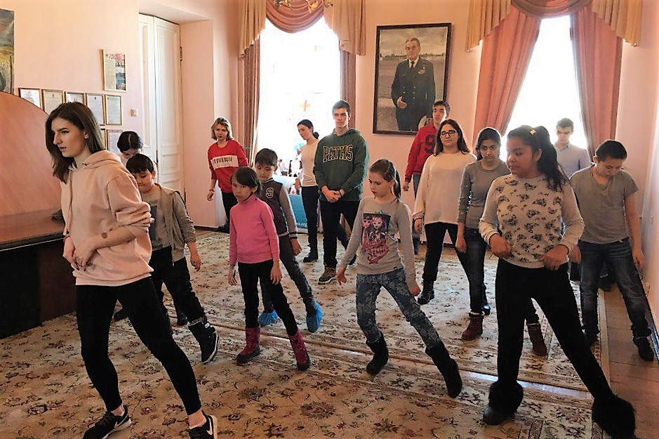 4 марта в детском центре «Красного креста» руководитель танцевального коллектива «SZIU Dance», студентка третьего курса факультета социальных технологий Ирина Акимова провела мастер-класс по современным танцам для детей беженцев.