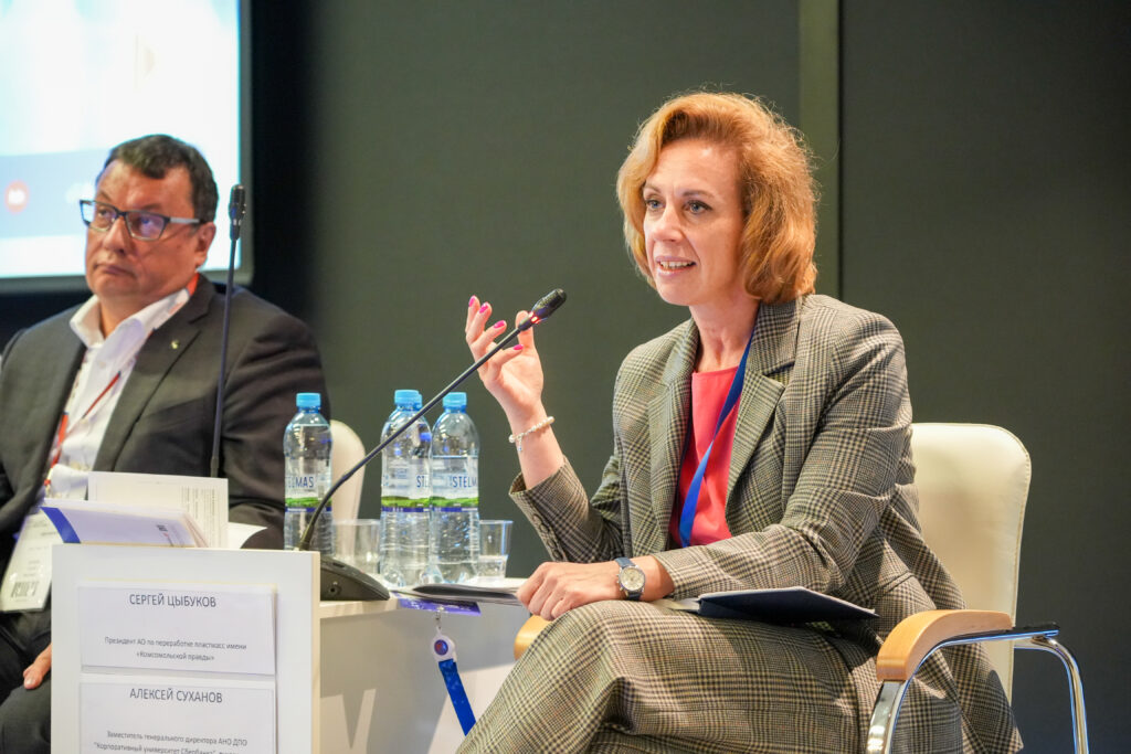 Опытом подготовки специалистов для достижения технологического лидерства поделилась декан Высшей инженерной школы «Новые материалы и технологии» (факультет) Российского экономического университета им. Г.В. Плеханова Валентина Дианова.