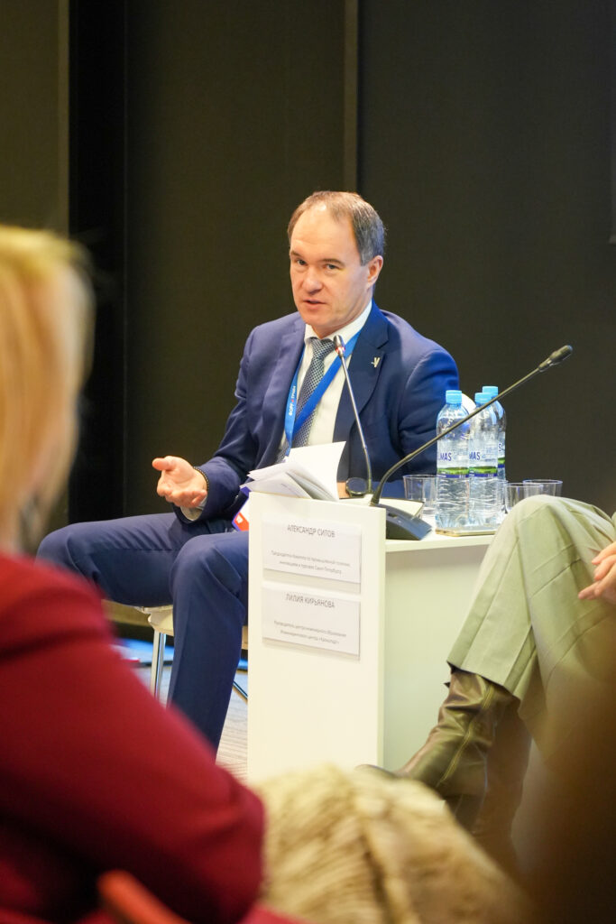 «Какой управленец нужен городу? Тот, у кого глубокое понимание производственных процессов и технологий будущего, наложенное на навыки бережливого производства и мотивации команды», – отметил Александр Ситов. Он рассказал о системной работе: от инженерных классов в школах, их уже 205, обучается 4000 учеников, до базовых кафедр на заводах. Отдельный проект «Петербург-Заводской» собрал 190 предприятий и 8000 заявок на трудоустройство.