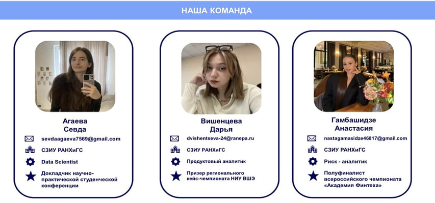Для Дарьи Вишенцевой, Севды Агаевой и Анастасии Гамбашидзе участие в чемпионате стало ценным опытом работы с реальным бизнес-кейсом. Студентки отметили, что соревнование позволило им существенно развить аналитические навыки и умение работать в команде, а также применить теоретические знания, полученные в Академии, для решения практической бизнес-задачи.