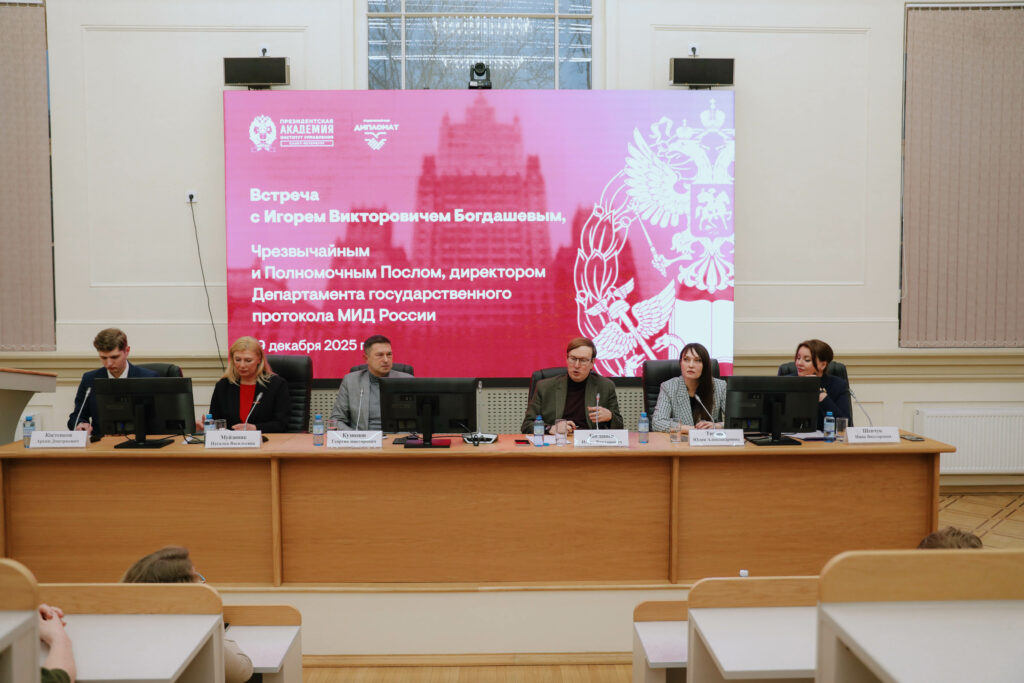 19 декабря состоялась встреча студентов направления «Международные отношения» с директором Департамента государственного протокола МИД России, Чрезвычайным и Полномочным Послом Игорем Богдашевым.